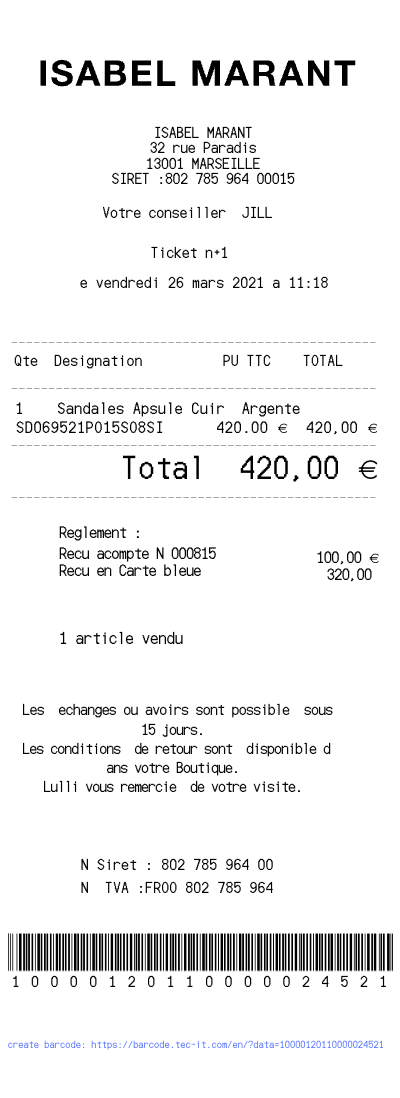 Create a Isabel Marant receipt with our receipt